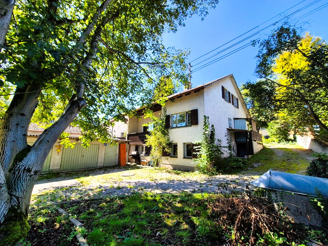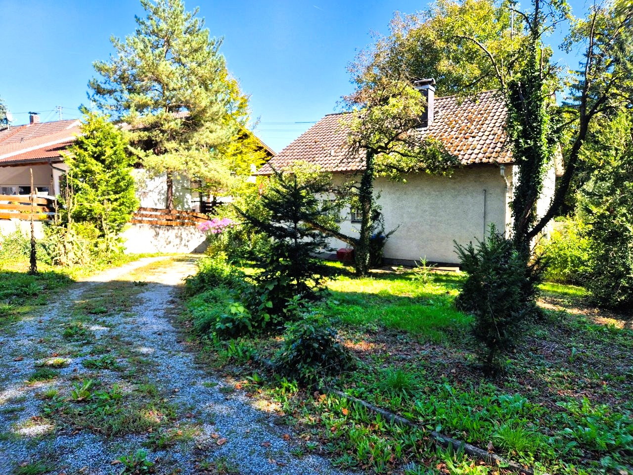 Derzeit ist es mit einem alten EFH (Bj. ca.1958) samt drei Garagen und einem kleinen Nebengebäude bebaut.