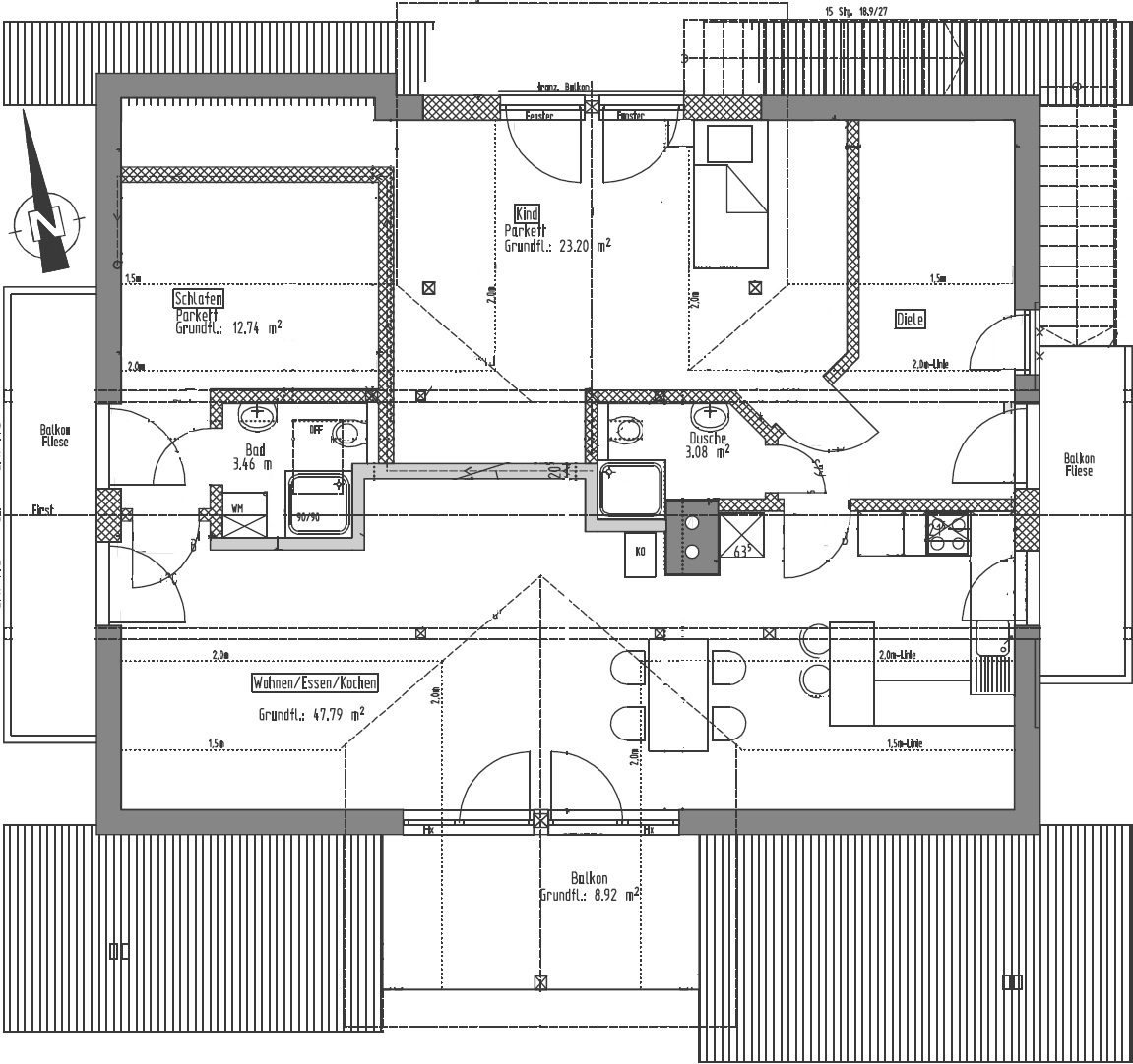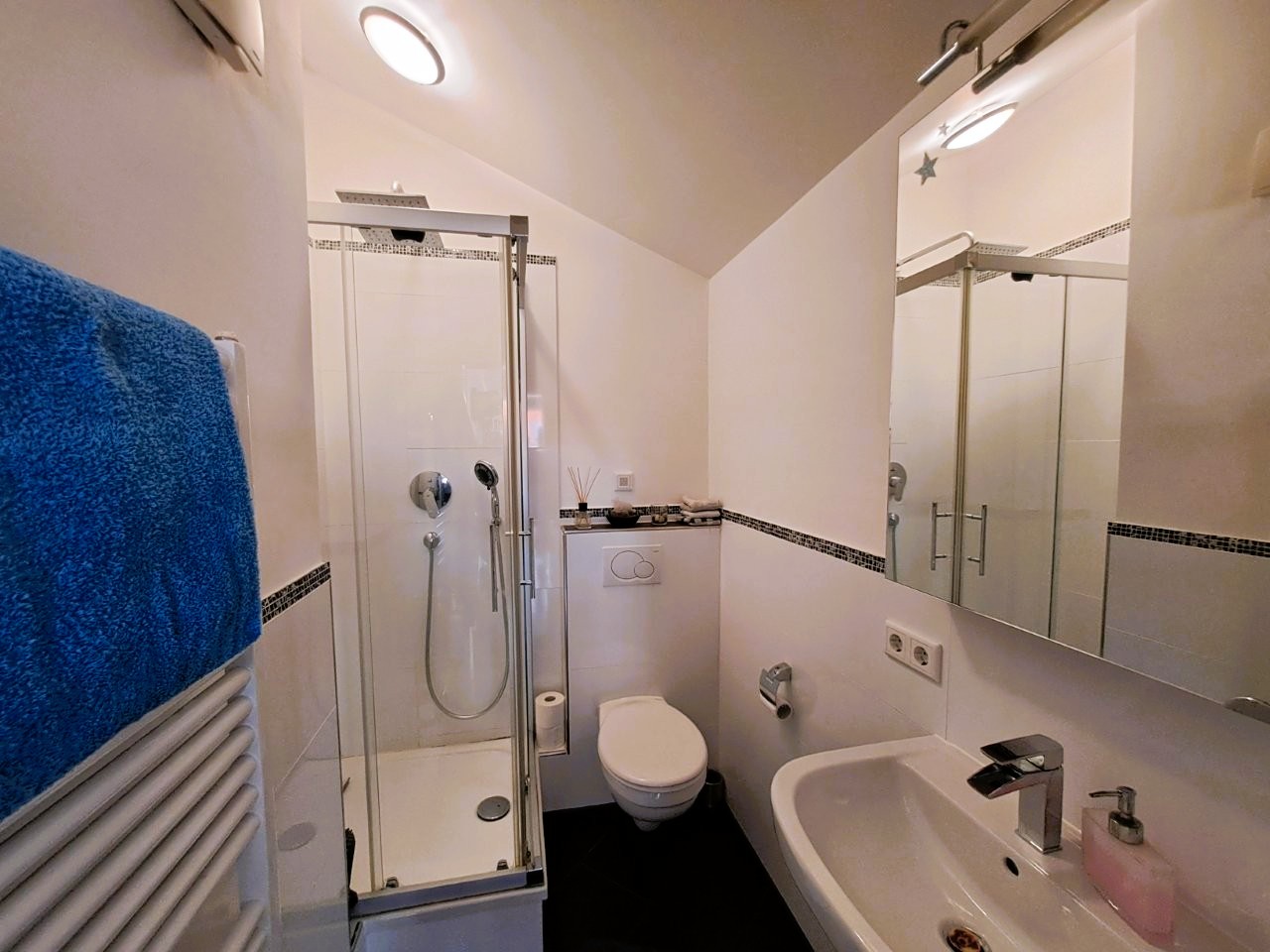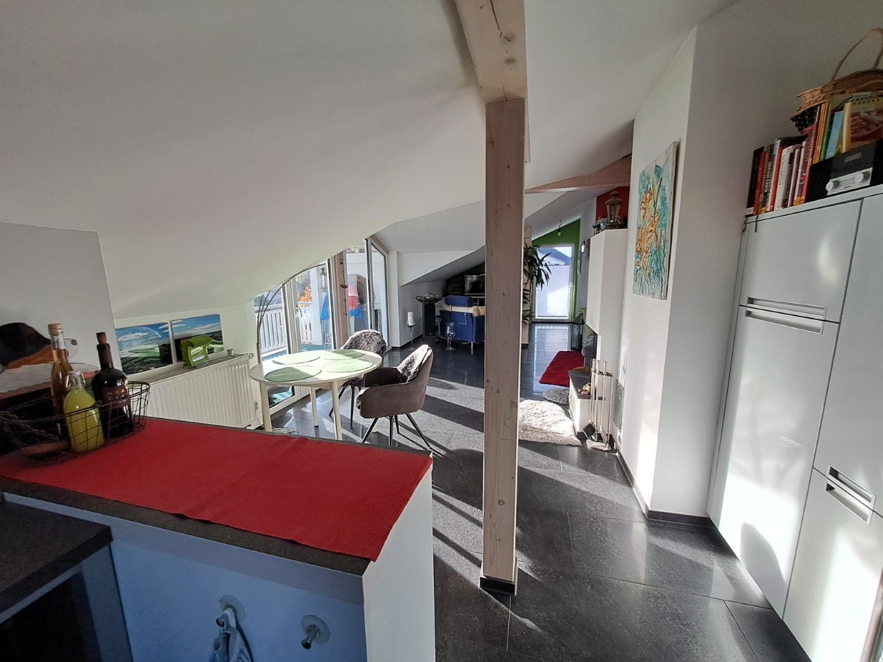 Das exklusiv gestaltete Dachgeschoß mit ca. 88 m² Wohnfläche (Grundfläche ca. 108 m²) präsentiert sich mit durchdachtem Grundriss und hochwertiger Ausstattung. Ein lichtdurchflutetes Wohnzimmer mit Kachelofen und moderner Einbauküche, ein großzügiges Schlafzimmer mit Bad, Diele sowie ein zusätzliches Zimmer mit praktischem Einbauschrank. Ein zweites Badezimmer sowie insgesamt drei Balkone runden das Raumangebot ab.